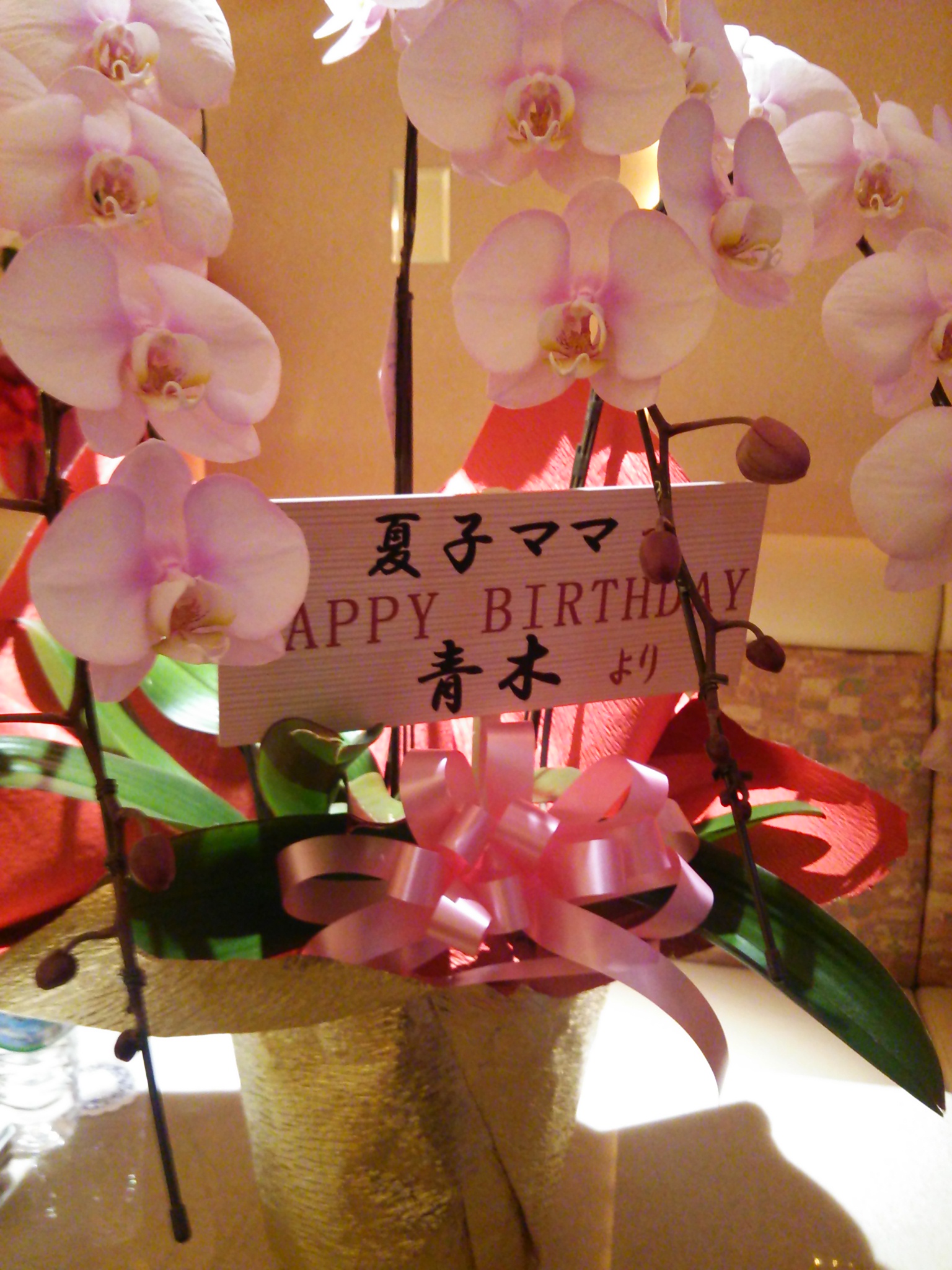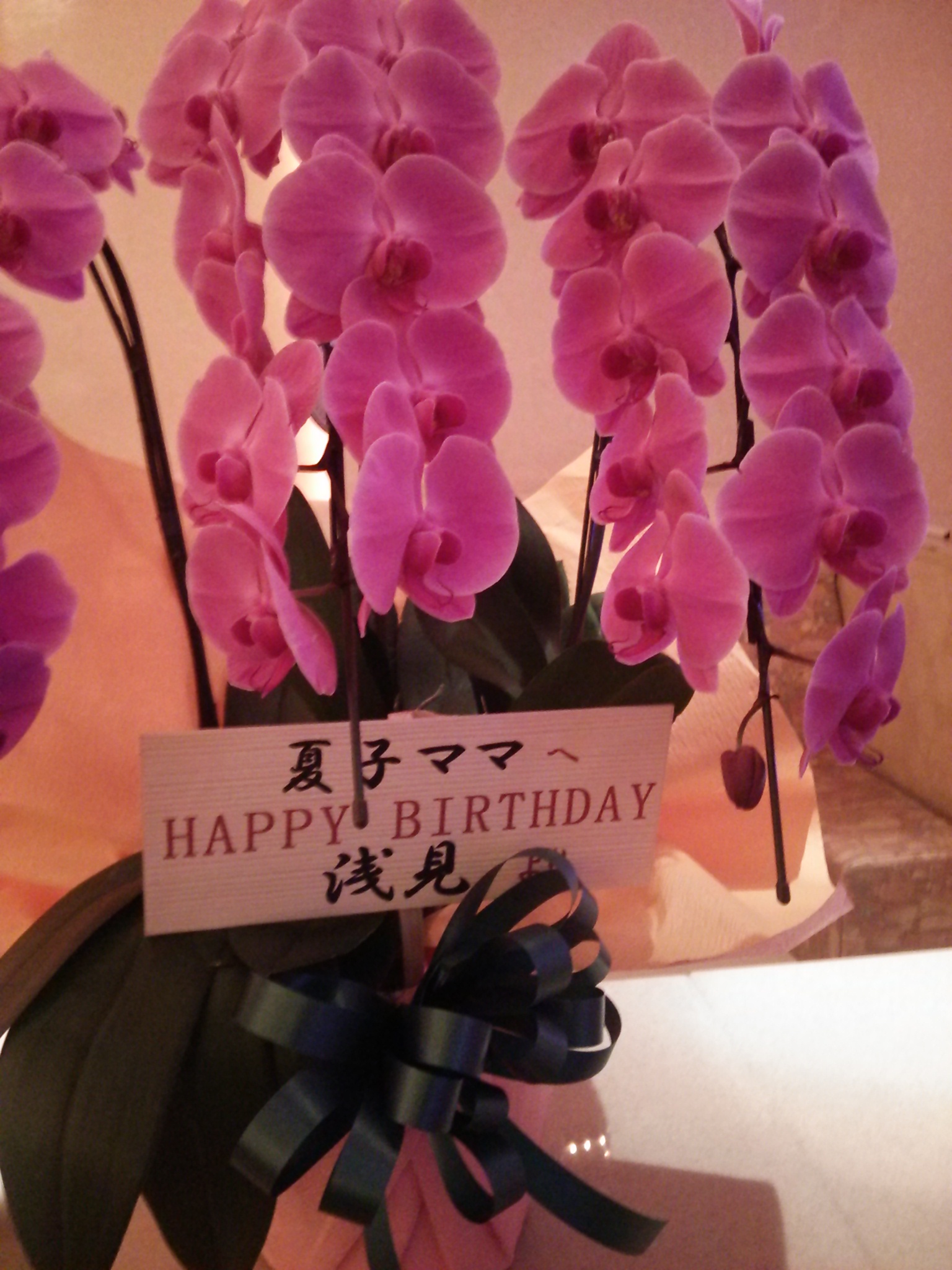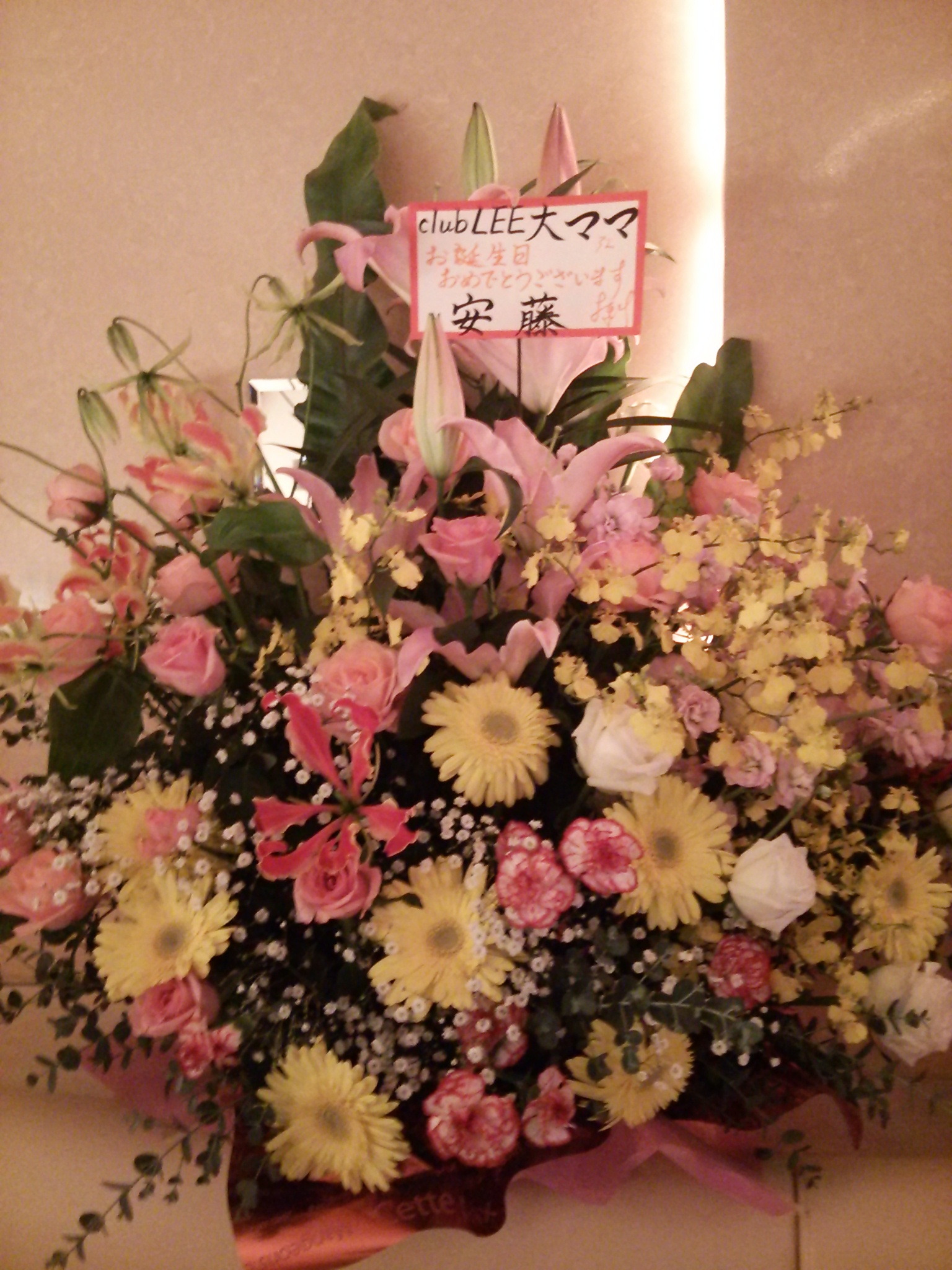 今日、クラブLEEに入店以来、新風を吹き込んでくれた夏子ママの誕生日です。多くのお客様からの数々の生花や飾りバルーンが届けられました。夏子ママ、誕生日おめでとうございます♪