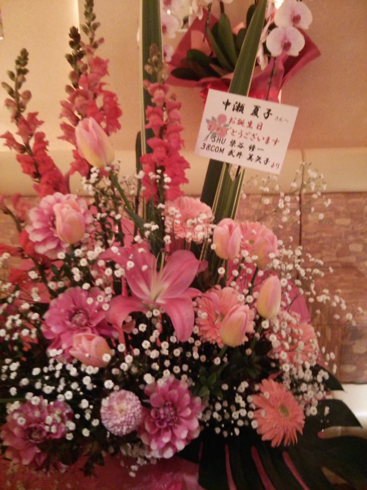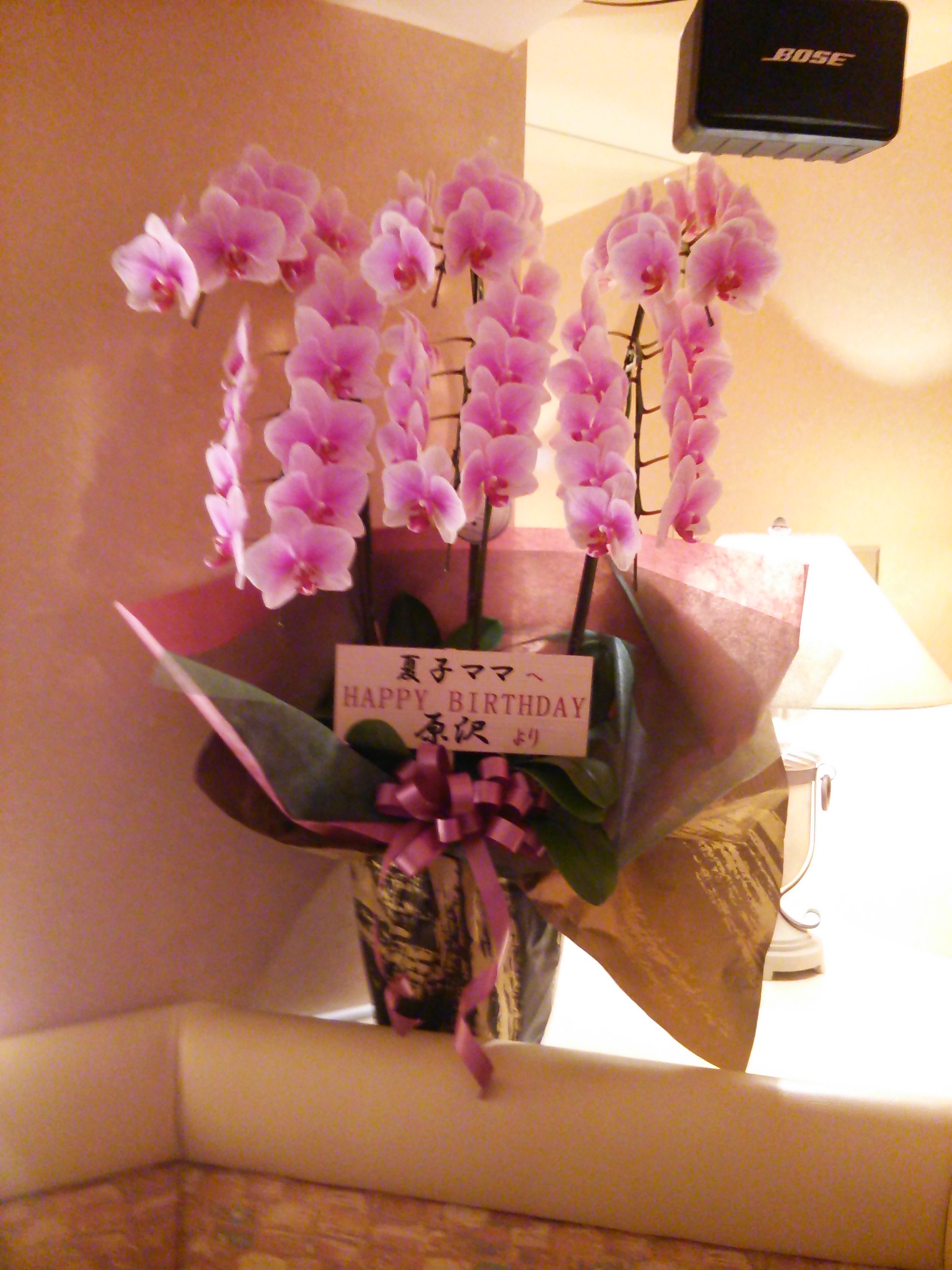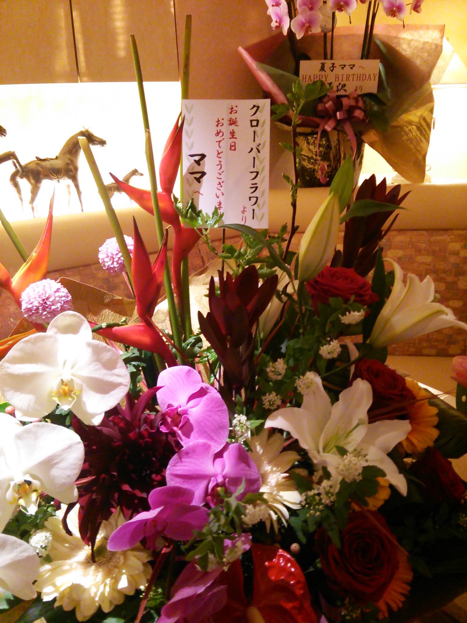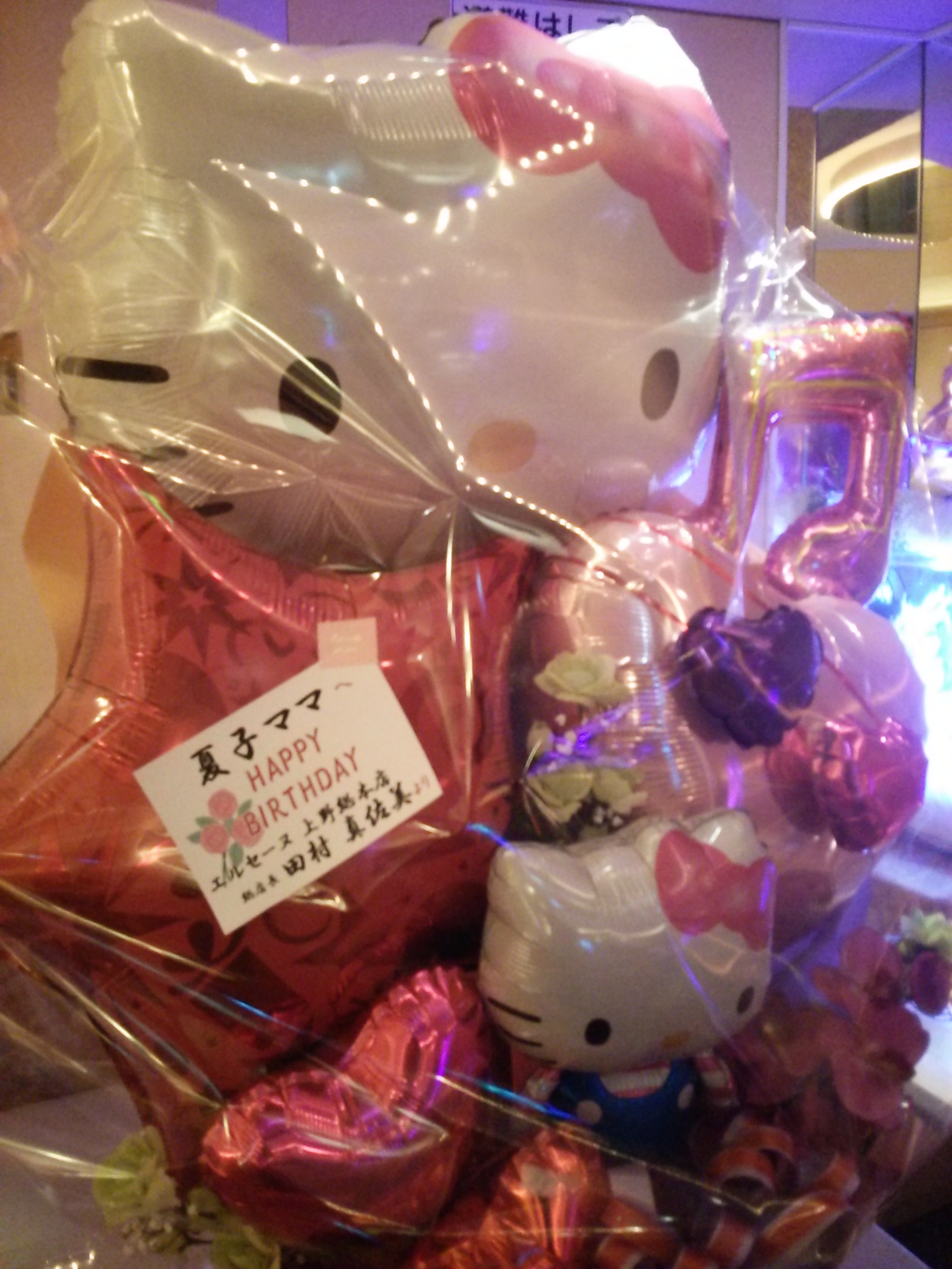 今日、クラブLEEに入店以来、新風を吹き込んでくれた夏子ママの誕生日です。多くのお客様からの数々の生花や飾りバルーンが届けられました。夏子ママ、誕生日おめでとうございます♪