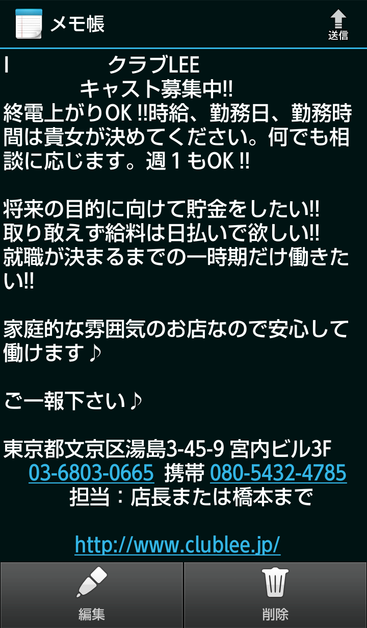 経験、年齢不問出来ればレギュラー,準レギュラーで働いて欲しいですね…時給2500円から 経験者優遇いたします。担当 橋本 080-5432-4785 受付 15:00から24:00まで